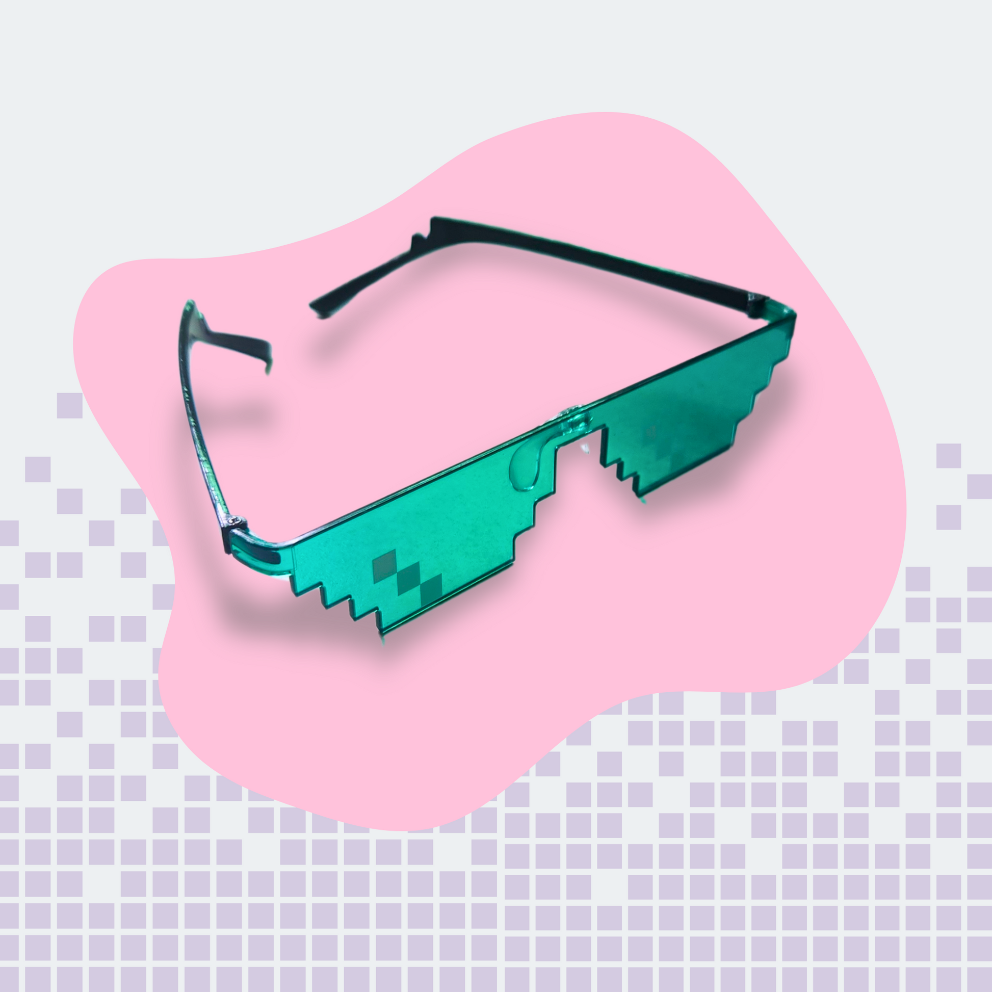 Add a pop of blue to your outfit and make a quirky statement with these funky fashion sunglasses that feature unique pixel art on the lenses and sit lightly on the skin.